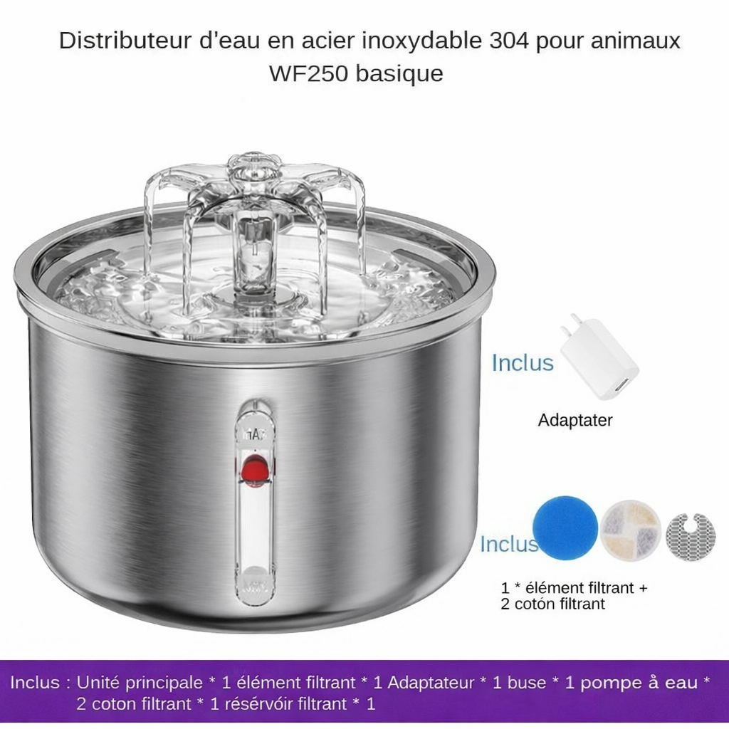 Offrez à votre animal de compagnie une solution pratique et écologique avec la fontaine à eau automatique intelligente en acier inoxydable. Ce modèle compact, idéal pour chats et chiens, est conçu pour une utilisation intérieure avec un design solide et élégant. Il possède un motif floral unique qui s'intègre harmonieusement dans votre maison. Alimentée par une batterie rechargeable avec une entrée USB, cette fontaine est écologique, sans écran LCD, et offre un fonctionnement simple et silencieux. Avec son indice de protection IPX5, elle est résistante à l'eau et garantit une durabilité accrue. Un accessoire indispensable pour assurer à votre compagnon à quatre pattes un accès constant à de l'eau fraîche et propre.